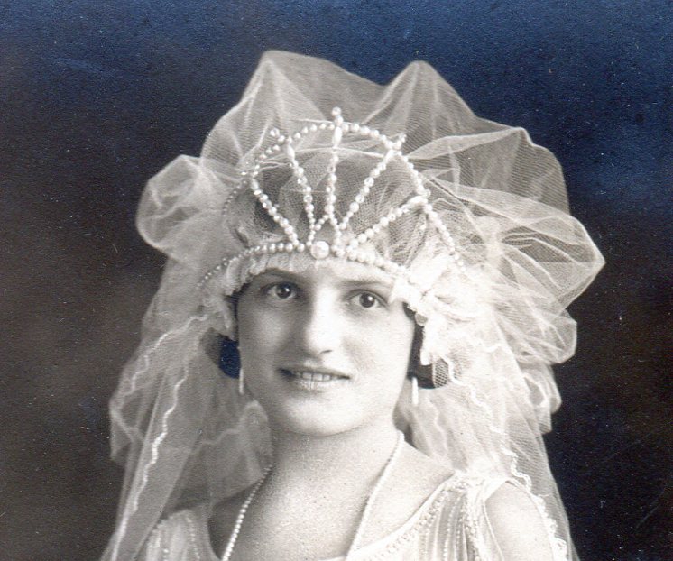 This 1923 bride’s headpiece reflects and Egyptian influence. Her dress also has white beading creating an Egyptian themed design. Continue reading 1923 Elegant Bridal Gown